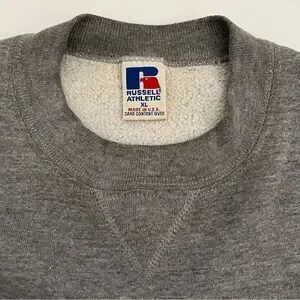 Russell Athletic Vintage Sweatshirt Solid Gray Grey Crew Neck Made in USA Men’s XL