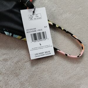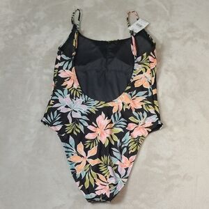 Billabong Black and Pink Floral One Piece Swimsuit NWT