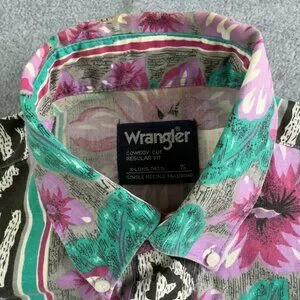 VNTG Wrangler Cowboy‑Cut Floral Aztec Pearl‑Snap Western Shirt Size 15 – Retro