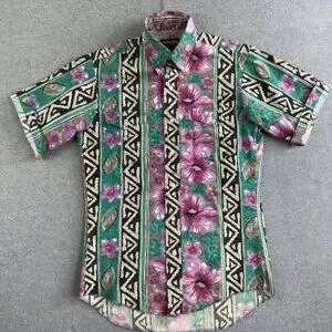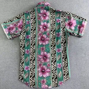 • Construction & Details: Button‑down Western collar, single‑needle tailoring, pearl‑snap front placket, chest flap pocket, contrast Aztec stripes and large floral motif
