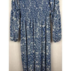 Cabana Life Aspen Smocked Maxi Dress Women's Medium Blue Floral Boho Cottagecore