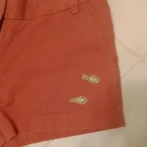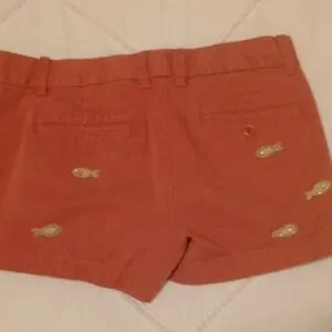 Stylish coral shorts featuring playful fish embroidery. Perfect for casual outings.