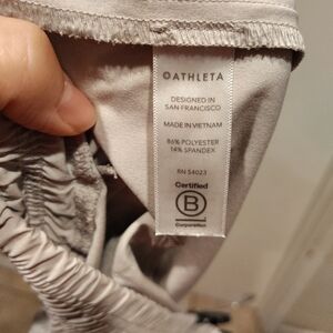 The Athleta Brooklyn Wide Leg Crop Pull-On Pants in size 12 are perfect for a casual, lightweight and comfortable travel outfit. Made of polyester and spandex, these beige pants feature a wide-leg style with a cropped length, making them ideal for various activities like walking and hiking. With a waist size of 34 inches and an inseam of 25 inches, these Athleta pants combine athleisure, city, and sports themes, making them a versatile and stylish option for women on the go.
