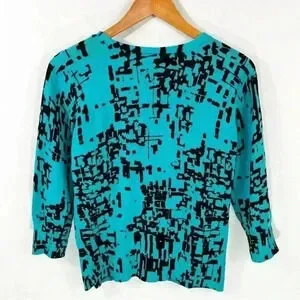 AGB Petite teal and black cardigan sweater