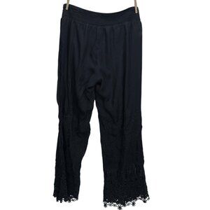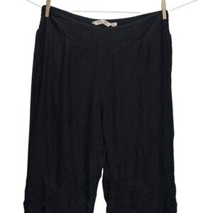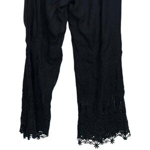 Soft Surroundings Womens Embroidered Pants Lace Trim Pull On Black Size S