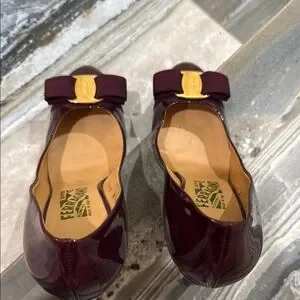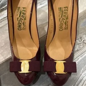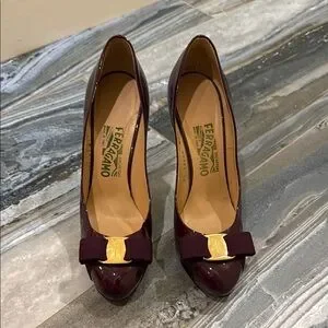 Salvatore Ferragamo Size 7.5 B Burgundy Patent Leather Pumps