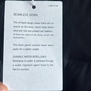 Warm and stylish Uniqlo down jacket. Features seamless design and hood.