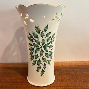 Lenox Holiday Pierced Holly Vase 9" with Box