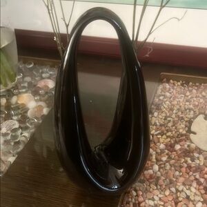 Enhance your home decor with this elegant black vase. Its sleek design adds a touch of sophistication to any room.