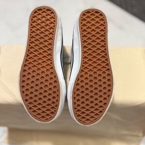 These Vans sneakers feature a sleek black and white color scheme with a classic skate shoe design. Crafted with durable canvas and suede, they boast a vulcanized rubber sole for superior grip and comfort. The high-top style and clean stitching details make them a standout choice for any casual occasion.