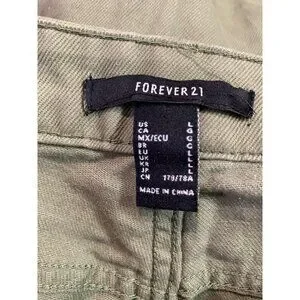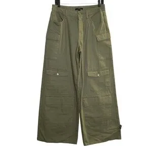 Forever 21 Women's High-Waisted Olive Cargo Pants Large Wide-Leg NWT