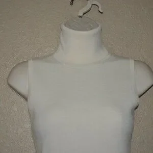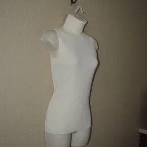 NWOT Sz S Allude Ivory Soft Wool Ribbed Sleeveless Turtleneck Top