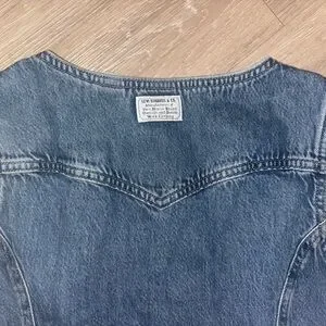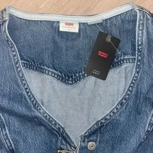 Levi's denim shirt with button-down front. Features a slim fit design. Wear as a dress or over as a long vest!
