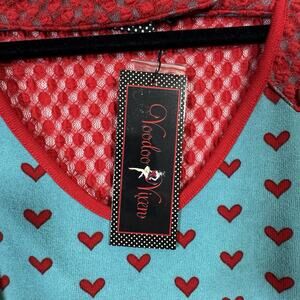 Voodoo Vixen XL NWT Aqua Red Heart Print Retro Pinup Dress Pockets