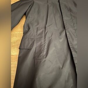Experience timeless elegance with the Loro Piana Black Trench Coat, designed with a sleek matte finish. This lightweight coat extends to mid-thigh, offering a sophisticated silhouette perfect for any occasion. Crafted with a smooth, water-resistant fabric, it ensures both style and practicality.