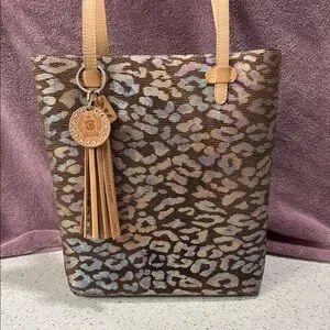 Consuela Iris Everyday Tote - Elevate your style with this chic brown leopard print tote bag. Perfect for any occasion, this bag combines fashion and functionality. The tan accents add a touch of elegance. Used - Excellent condition