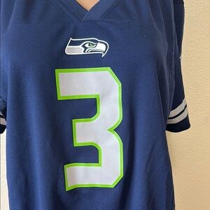 Seattle Seahawks jersey with number 3. Features blue and green colors.