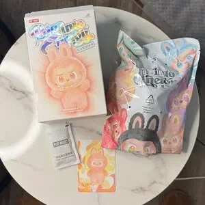 Authentic Pop Mart The Monsters Big Into Energy Labubu. Happiness! Box is opened to reveal card but bag is sealed. Authenticity guaranteed from QR code on box and plush.