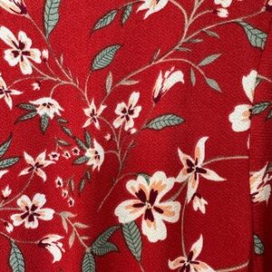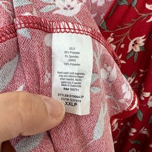 Red floral maxi dress, no wrinkle fabric, stretchy, long sleeve. Sz XXLP