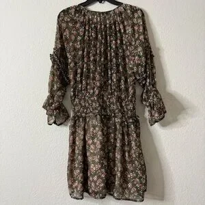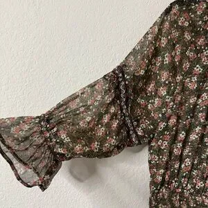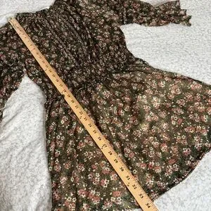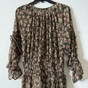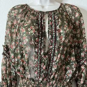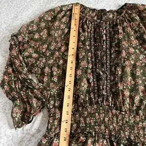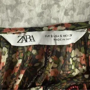 Zara Floral Beaded Mini Dress Small Peasant BOHO Festive Ruffle Smocked