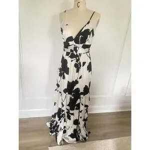 Hutch x Anthropologie - Satin Tiered Floral Maxi Dress, size 12