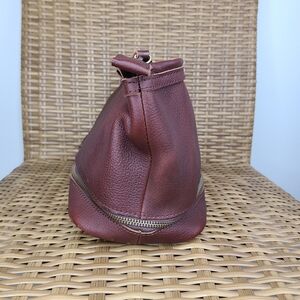 The Bob Timberlake Shaving Kit features a large main compartment accessible via a wide gatemouth zippered opening with zip pocket, mesh organizer drop-down bottom storage, and convenient side-carry strap. Top grain leather