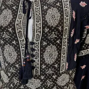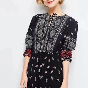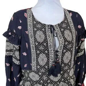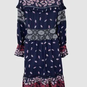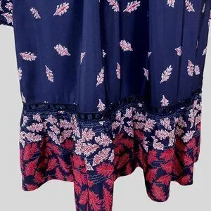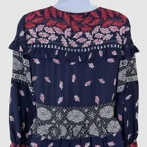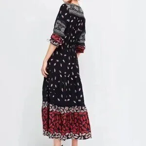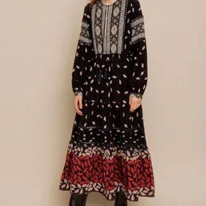 Sea New York Eloise Boho Fall Leaves Long Sleeve Tassel Tie Silk Midi Dress 2