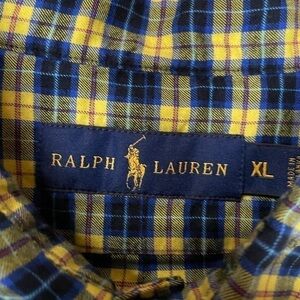 Ralph Lauren Polo Mens Formal Shirt Yellow Blue Plaid Size XL