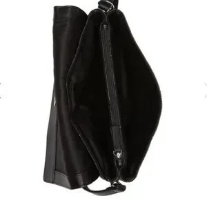 A faux leather allover logo detailed messenger bag with 3 separate compartments to stash your necessities and stay organized all at once. - Adjustable shoulder strap - Flap with magnetic button closure - Exterior features allover embossed(black) or printed logo detail - Interior features 2 compartments separated by 1 center zip compartment - Approx. 7" H x 10" W x 2" D - Approx. 19-23" strap drop - Imported