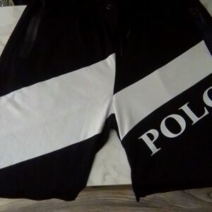 Stylish black and white tracksuit with bold Polo logo. Features a unique design with contrasting colors.