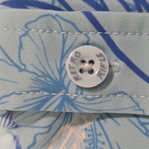 The quality of this top is close to a luxury designer as hems are impeccable, all buttons are logoed, collar has holding buttons NOT slots for plastic holders. Retro logos & extra buttons in hidden locations.