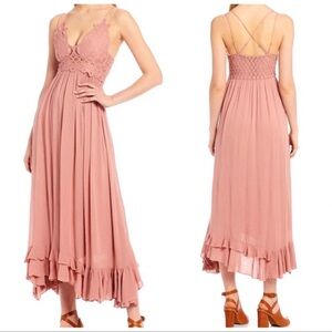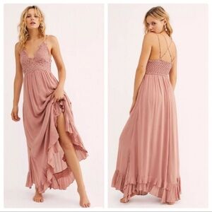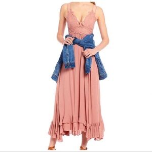 Our favorite slip dress in a maxi silhouette featuring the best selling ADELLA Bralette at the top with Boho crochet lace details and a light airy skirt with a tiered hem