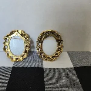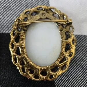 Lot of 2 Gold Tone Metal Framed Victorian Inspired Brooches of Female Subjects