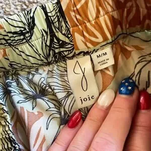 Joie Wide leg Satin tropical floral print boho pants Size Medium