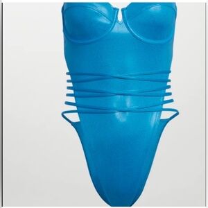 Rare!!! IVY PARK adidas metallic glitter aqua turquoise teal swimsuit s…