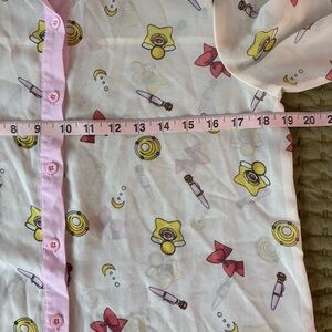 Sailor Moon sheer allover print shirt with bows, transformation pens, magical compacts and more! BoxLunch exclusive. Excellent condition.