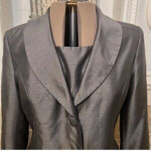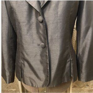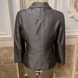 EY Signature. Size 14. Gray Shantung Blazer Shacket. Long Sleeve. Poly Lined. Shoulder to hem 25.5". Sleeve 23.7". Bust 21/42". Waist 38". Dry clean. Poly.