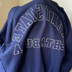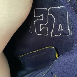 Extremely rare early 70s, maybe late 60s Rawlings USA made Lettermen jacket for KSU. Kentstate. Impossible to find these now days. It’s in excellent vintage condition. All original buttons, no rips or tears or smells. Will fit women’s xl, or men’s large. Gorgeous navy and mustard colourway. They still produce these in a newer style today, such an odd to vintage football and varsity style.