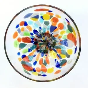 Add a splash of color to your home with this vibrant art glass goblet. Featuring a stunning mix of blue, orange, and green, this piece is perfect for art lovers.