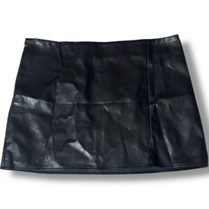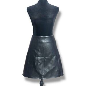 Old Navy NWT Black Faux Leather Mini A-Line Fit and Flare Skirt with Slit