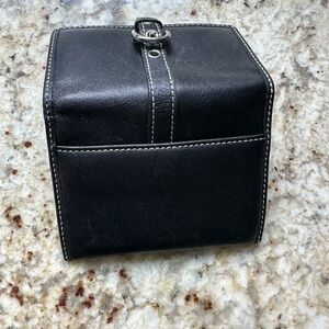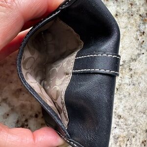 Used a few times excellent condition looks brand new leather inside when you open it and down the back and coach logo inside front and back Elegant black leather wallet by Coach. Sleek and versatile design. Silver buckle front Final Sale