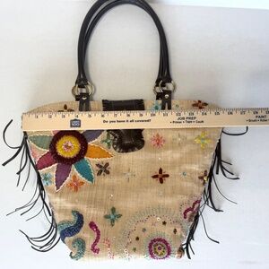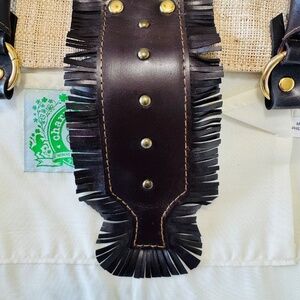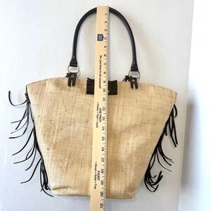 Charm and Luck Straw/Leather Summer Tote/Bag w/Side Fringe/Magnetic Closure