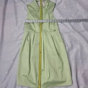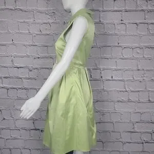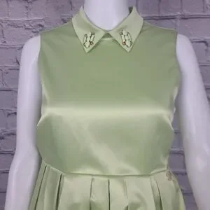 The green fairy lives in this delightful satin midi dress from Mangano. Adorned with two small faux pins on the collar, this cute dress in in excellent pre-owned condition. Measurements in images.