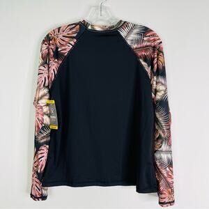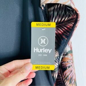 NEW Hurley black white pink palm beach rash guard swim surfing UPF medium