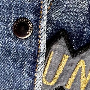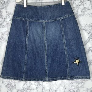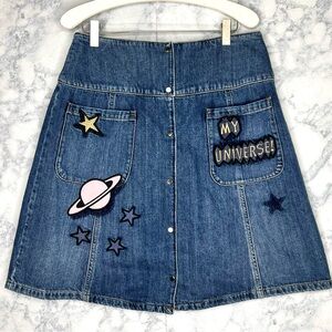 ⭐️ EMPORIO ARMANI A Line Y2K Denim Skirt Women’s 8 Cosmic Galaxy Patches