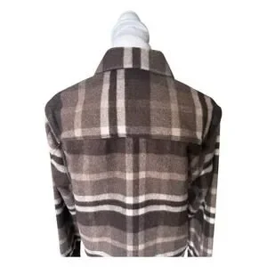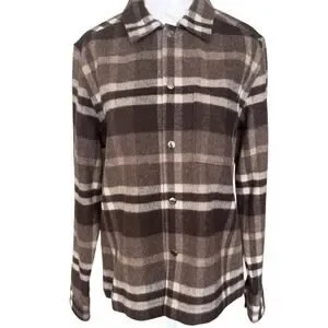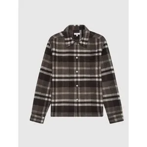 Reiss Cortez Wool Blend Plaid Overshirt Flannel Brown S