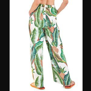 FARM Rio Tropical Print Wide Leg Pants - Green and White