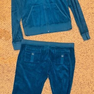 Juicy Couture Teal Terry Hoodie Jogger Tracksuit Sweatsuit Set Top XL Bottom L