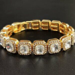 ⭐ Large 8" Iced Out Diamond Bracelet 17.00 Ctw. Chain 13mm Wide 18k Yellow Gold ⭐