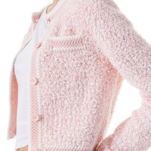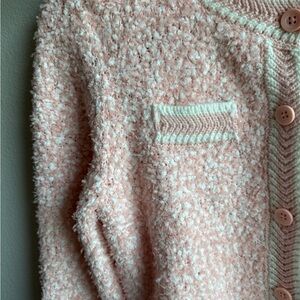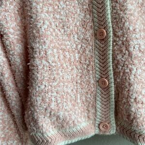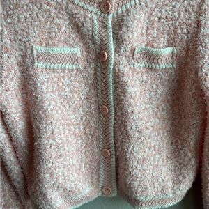 Chic blush knit cardigan with button detail. Ideal for layering.